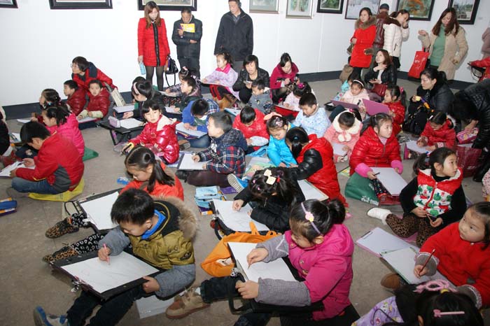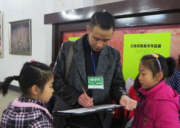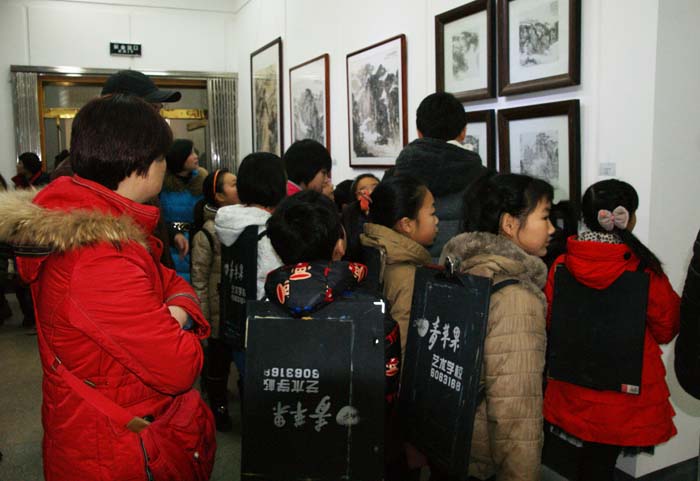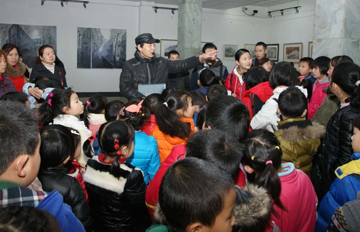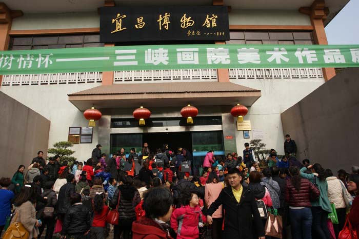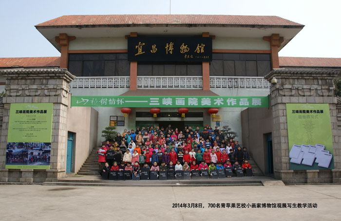 3月8日,青苹果艺术培训学校组织近700名小画家来到宜昌市博物馆,参观“山楂树情怀”三峡画院美术作品展,展览共展出汪国新、胡言、徐爱国、杨明清等40多位画家的百余幅作品,然后实地教学写生。
