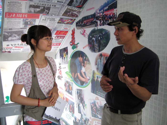 徐老师正在向杨慧文介绍历年从青苹果走向央美的师兄师姐们