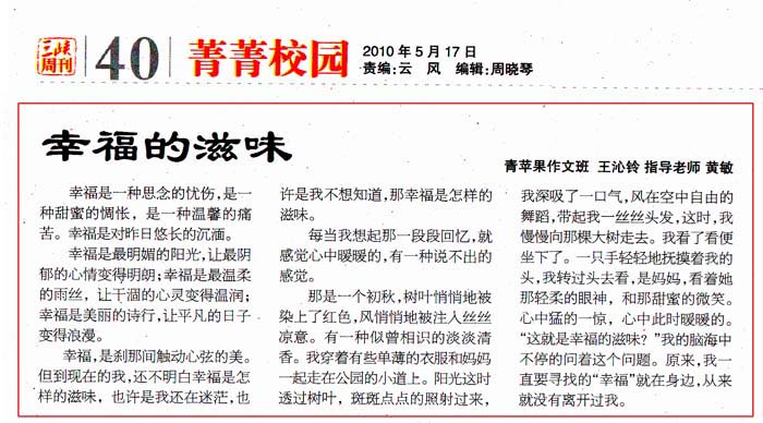 2010年5月17日《三峡周刊》第21期40版 “菁菁校园”