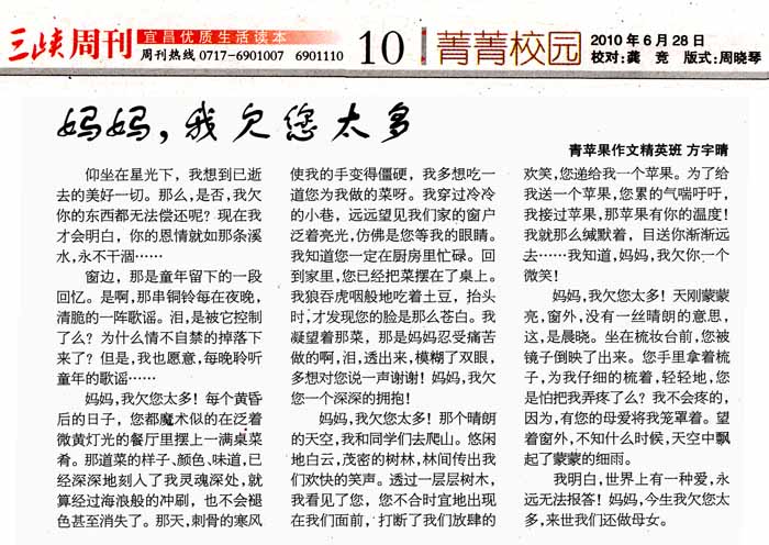 2010年6月28日《三峡周刊》第27期10版 “菁菁校园”