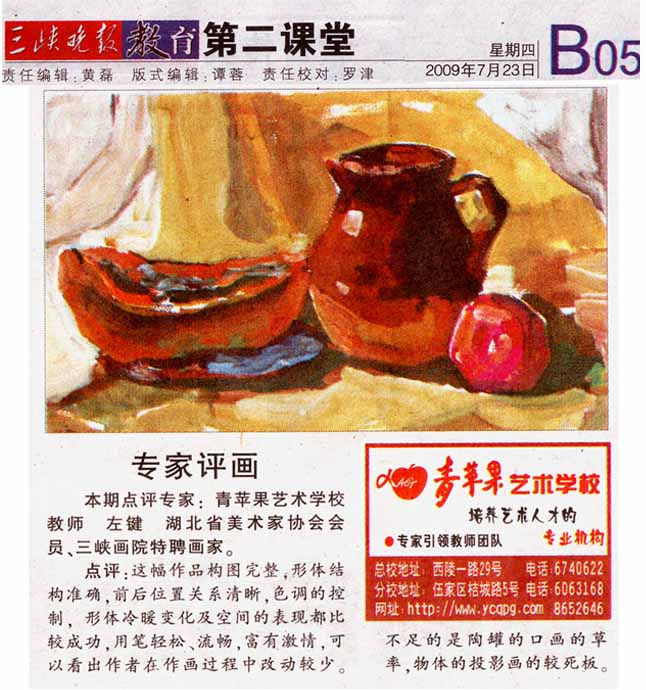 本期点评专家:青苹果艺术学校教师 左键 湖北省美术家协会会员、三峡画院特聘画家。