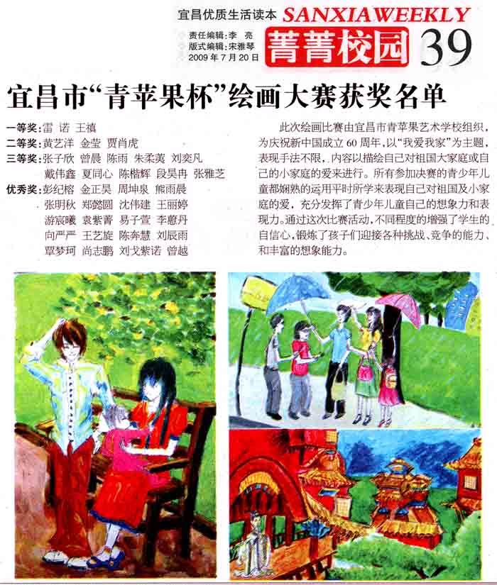 据大赛评委,宜昌市著名画家徐爱国先生说,寻找美、感受美、表达美是百名小画家共同的表达目的。本次大赛主题是“我爱我家”,孩子们用天真的眼睛、善良的心灵去感受和发现美,用他们稚嫩的手和不太成熟的技巧表现了他们的生活热情,描绘出对未来美好生活的憧憬。