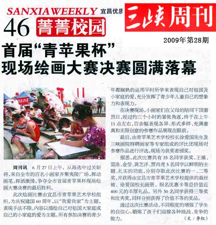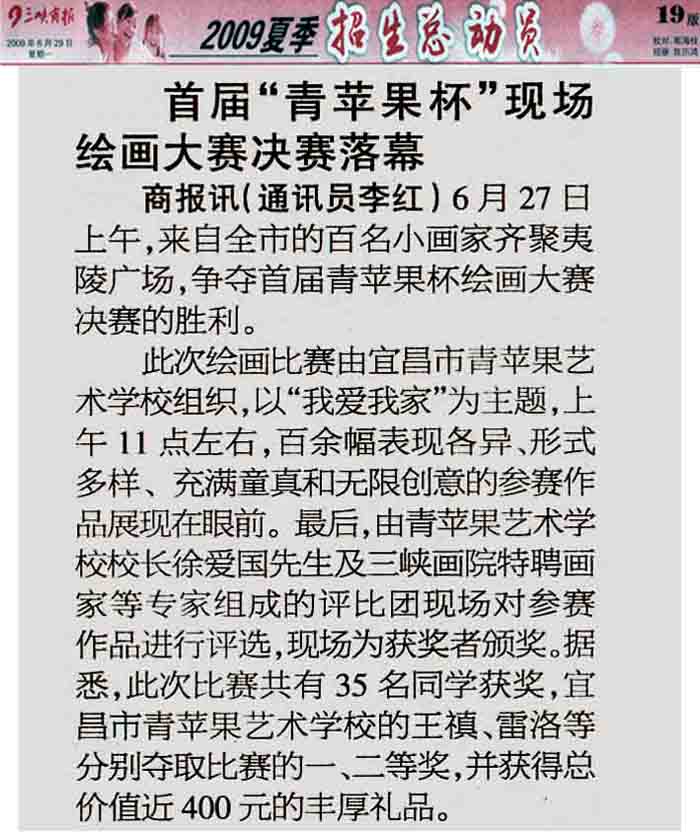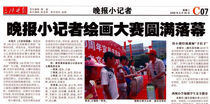 艳阳高照,100名小记者聚集在夷陵广场喷泉四周,席地而坐,现场挥毫泼墨。6月27日上午,青苹果杯晚报小记者现场绘画决赛大赛落下帷幕,雷洛、王禛等35名同学获得本次比赛大奖。