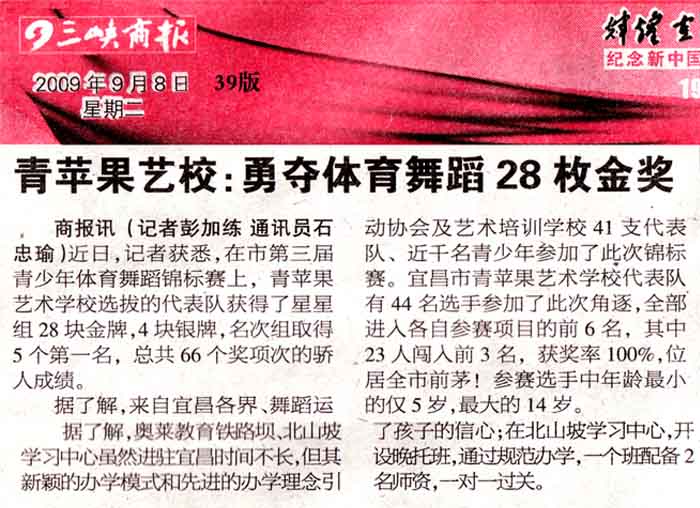《三峡商报》2009年9月8日39版新闻报道