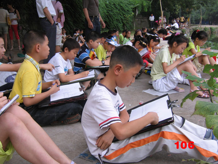 记者看到,孩子们兴趣浓厚,有画素描的,有画色彩的,有画拱桥的,有画凉亭的。同学们的画吸引了许多游人驻足观看。