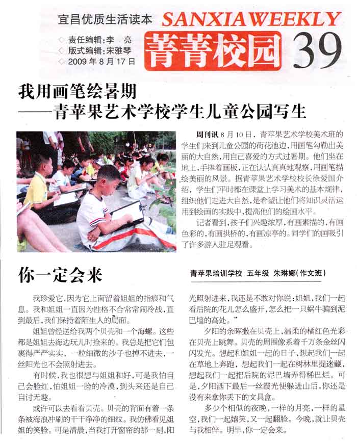 8月10日,青苹果艺术学校美术班的学生们来到儿童公园的荷花池边,用画笔勾勒出美丽的大自然,用自己喜爱的方式过暑期。他们坐在地上,手捧着画板,正在认认真真地观察,用画笔描绘美丽的风景。据青苹果艺术学校校长徐爱国介绍,学生们平时都在课堂上学习美术的基本规律,组织他们走进大自然,是希望让他们将知识灵活运用到绘画的实践中,提高他们的绘画水平。