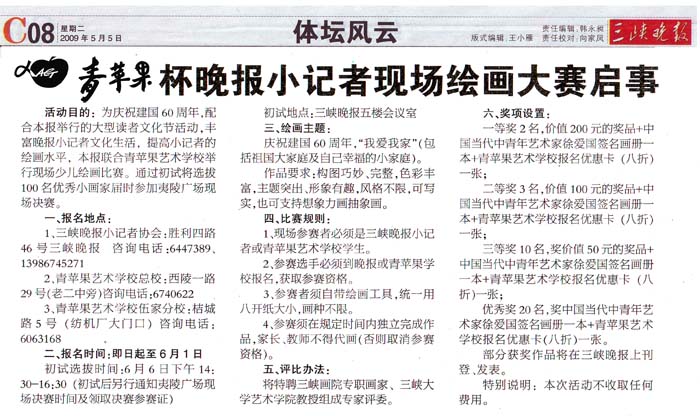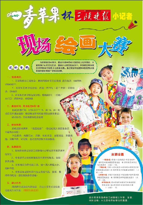 1、现场参赛者必须是三峡晚报小记者或青苹果艺术学校学生。