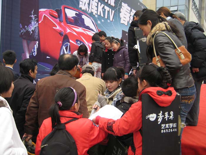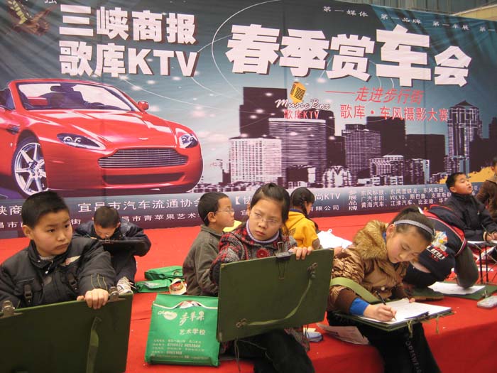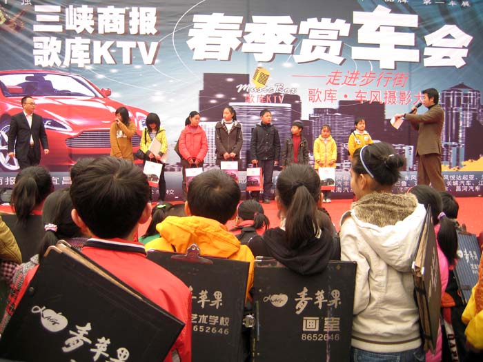 3月8日是妈妈们的节日,青苹果艺术学校百余名小画家受邀参加“三峡商报2009-走进步行街春季赏车会暨现场绘画比赛”,用画笔描绘汽车童话的艺术世界。