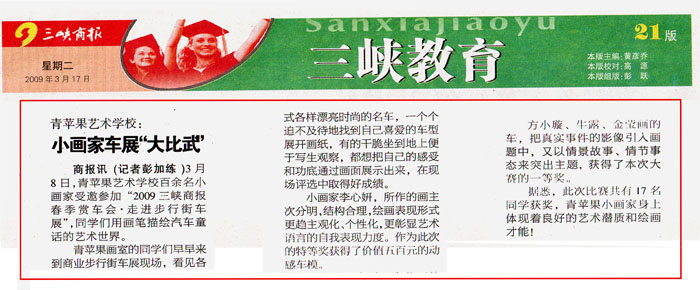 2009.3.17《三峡商报》21版“三峡教育”-小画家车展大比拼