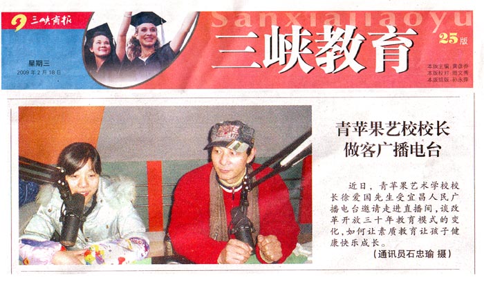 近日,青苹果艺术学校校长徐爱国先生受宜昌人民广播电台邀请走进直播间,谈改革开放三十年教育模式的变化,如何让素质教育让孩子健康快乐成长。