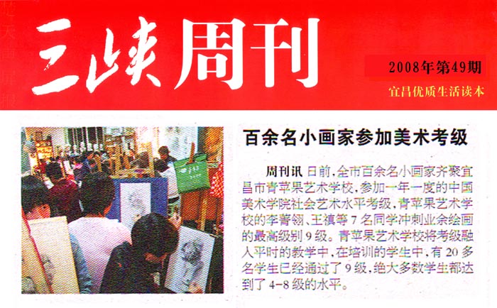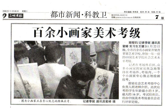图为2008年11月26日《三峡商报》7版“科教卫”——百余小画家美术考级