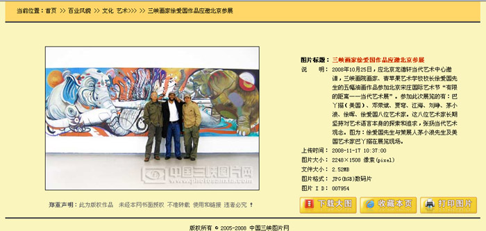 图为2008年11月17日《三峡图片网》“三峡画家徐爱国作品北京参展”新闻