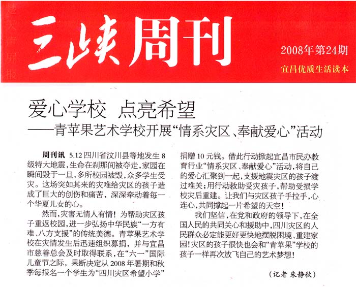 图为2008年第24期《三峡周刊》19版——情系灾区、奉献爱心活动