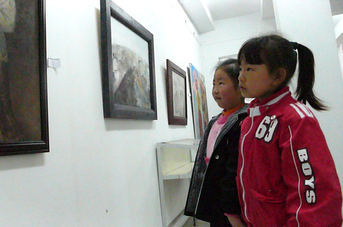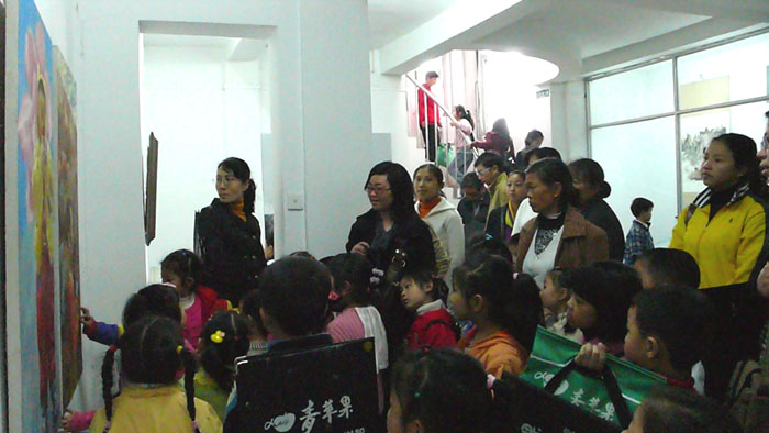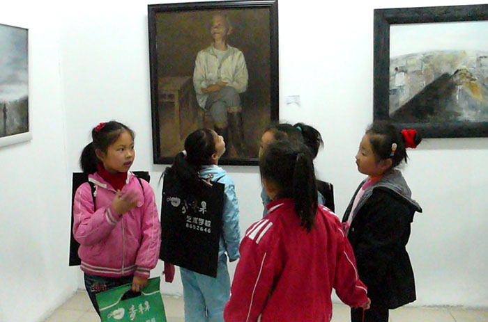 青苹果艺术学校学生在三峡画院展厅参观画展