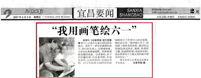 2007年6月3日《三峡商报》第2版“民办与教育”——我用画笔绘“六一”。