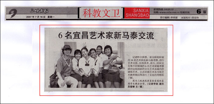 2007年7月16日《三峡商报》第6版“科教文卫”新闻报道:宜昌艺术家新马泰交流