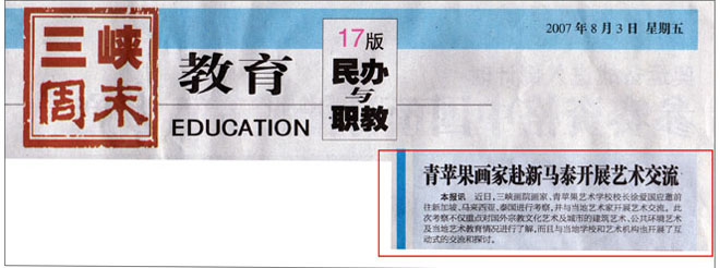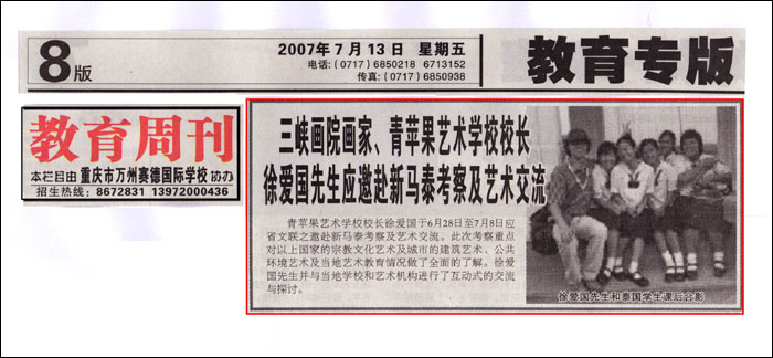 2007年7月13日《电都传媒》报8版教育周刊——青苹果艺术学校校长徐爱国先生应邀赴新马泰交流
