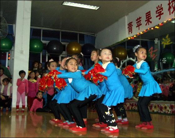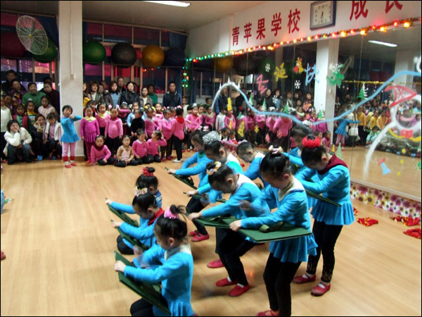 青苹果艺术培训学校在伍家分校12月25日晚上举行了别开生面的圣诞晚会.