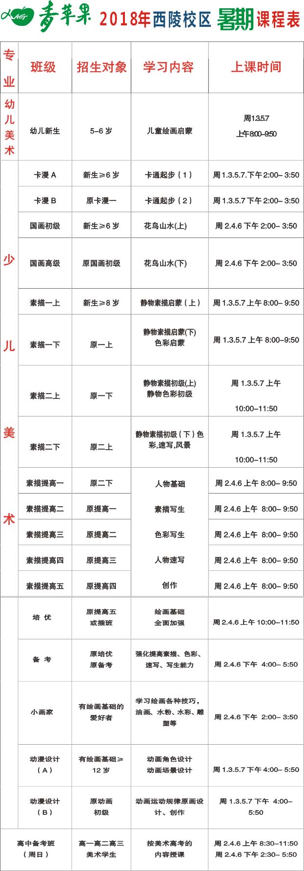 青苹果艺术学校 将同时在8月份推出 第二期强化班