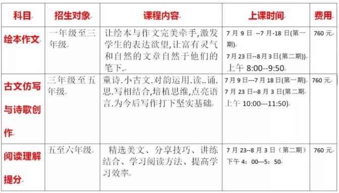 (2)暑期秋季一次性报名的学生,暑期可享受团报价480元(不含资料费)