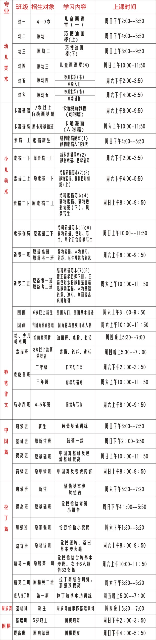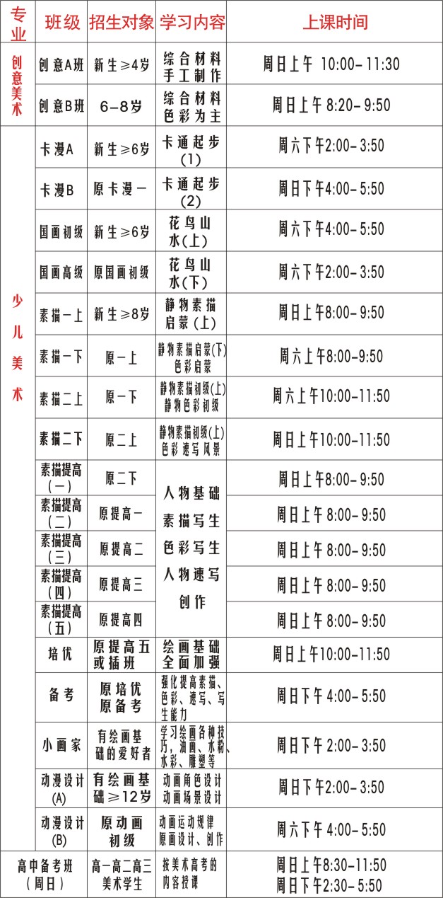 报名时间:2016年12月至2017年2月 (小班教学,名额报满为止,均可插班)