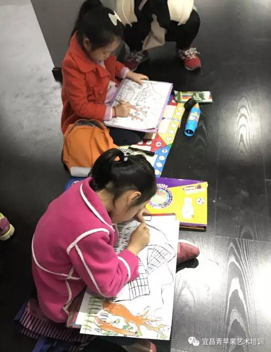 一位带着孩子前来看展览的妈妈,听完龚老师的讲课,看到孩子浓厚的兴趣,一口气临摹了3幅画,高兴的说道:“没想到他还有这么专注一件事的时候,听了老师的课,我都想去学了,下周就带孩子去青苹果报名!”