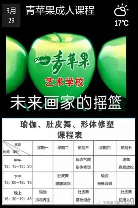 上课地址:青苹果艺术学校伍家校区(国贸新天地2楼)