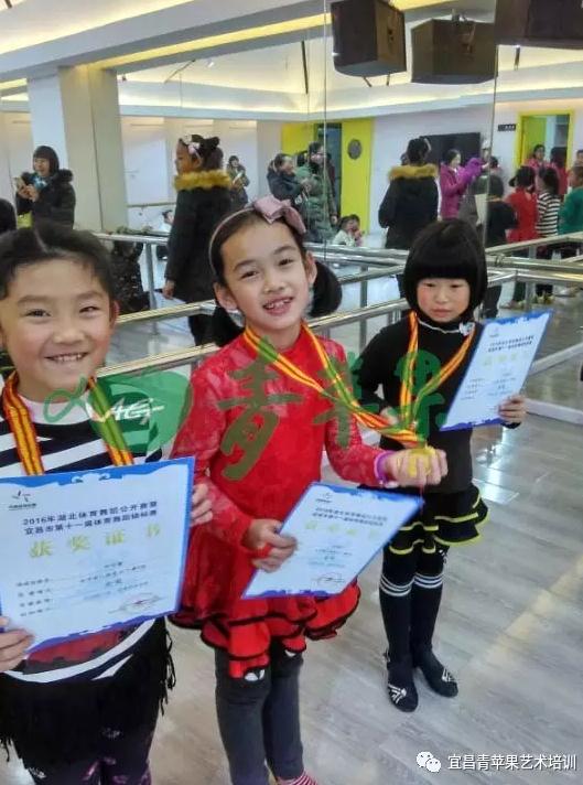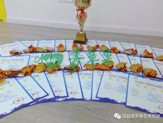 湖北省第十一届少儿拉丁舞比赛已落下帷幕,来自宜昌市城区及周边县市区共计90支代表队,2000多人参赛,青苹果艺术学校,选送出78人庞大阵容参加了角逐。在赛场上他们以高超的技术,脱颖而出,共获得名次赛第一名奖牌8枚,第二名奖牌10枚,第三名奖牌2枚,第四名奖牌6枚,第五名奖牌7枚,女双金牌20枚,银牌8枚的好成绩,他们最小的5岁,最大的13岁。