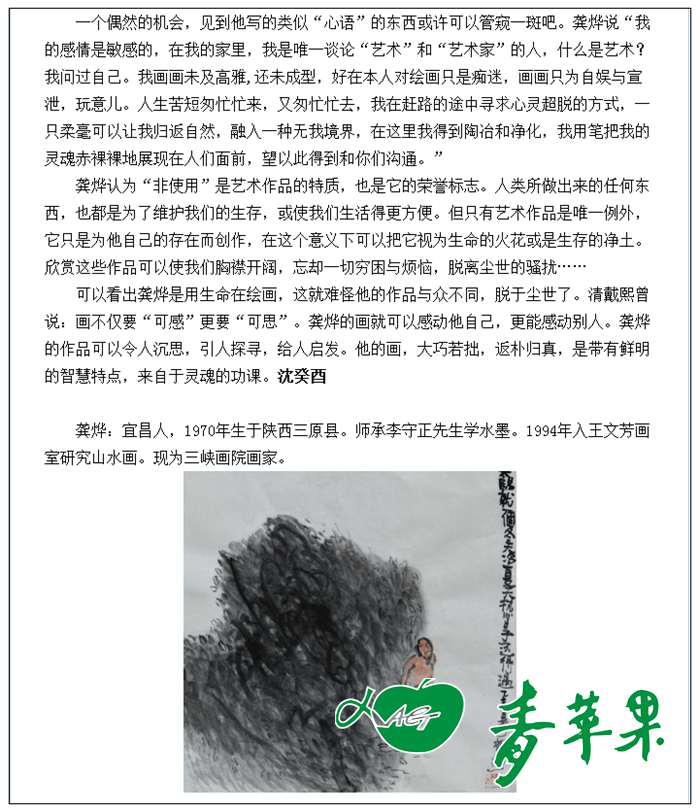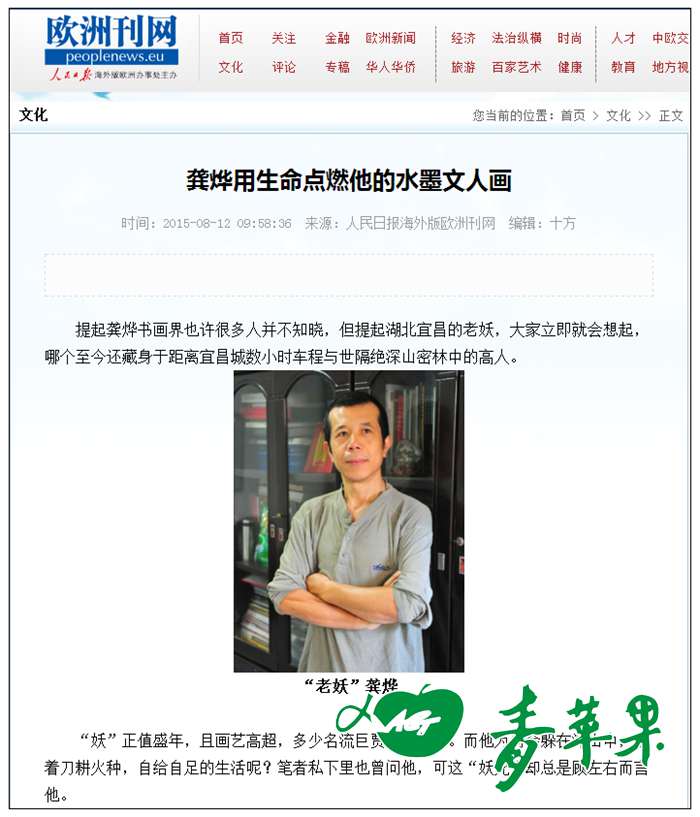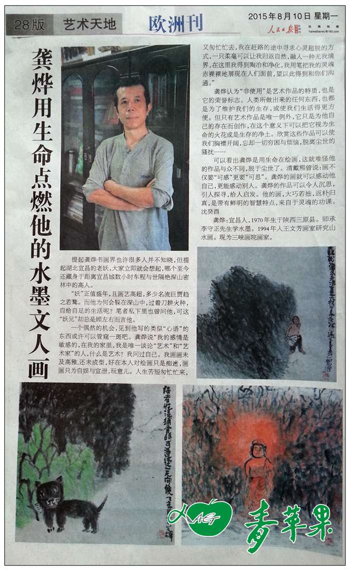 2015年8月10日 《人民日报》海外版专版介绍青苹果艺术学校国画班龚烨老师及其作品。