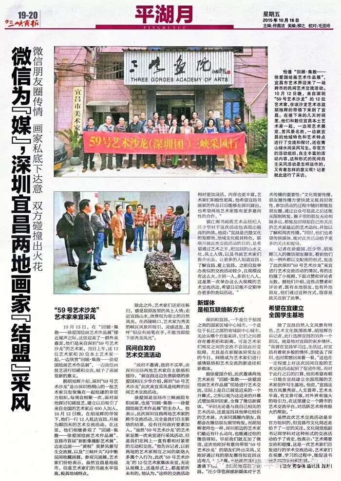 近日,宜昌市三峡画院展览中心,人头攒动,来自深圳59号艺术沙龙12位艺术家与20多位本土画家,在“回顾.集散——徐爱国艺术作品展”展览现场进行艺术交流。