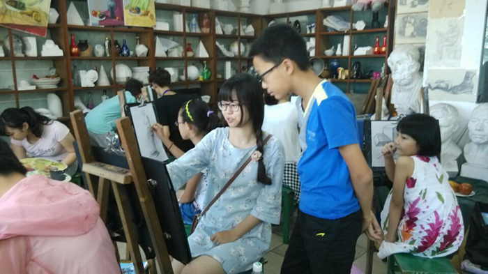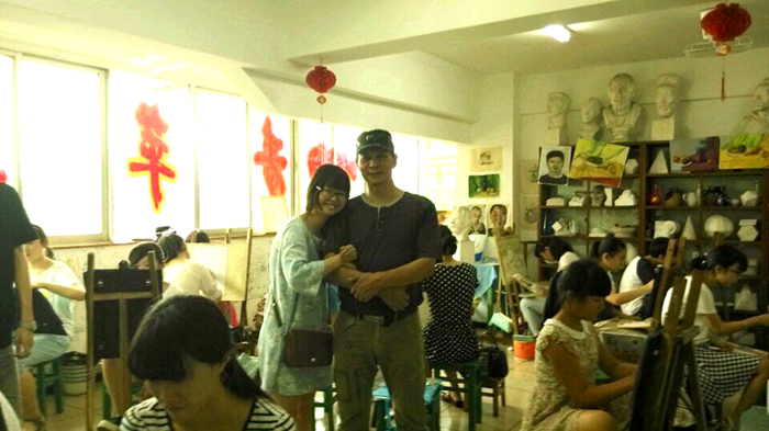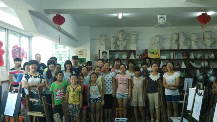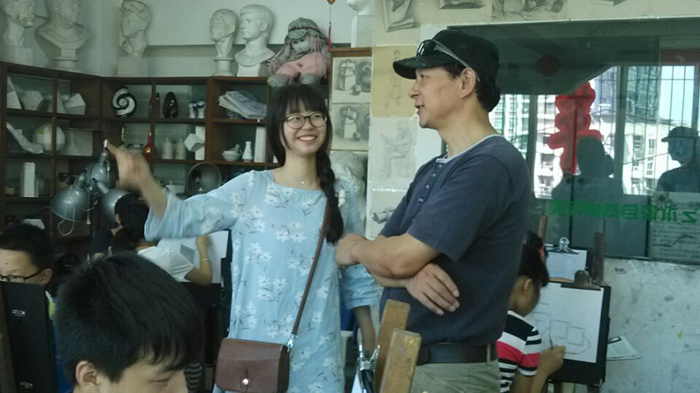 2015年暑期,现就读于中央美术学院大四学生杨慧文同学回母校探望恩师徐爱国校长,即兴辅导小画家班师弟师妹作画技巧,交流学习心得。同时将自己精心创作的毕业作品之一赠送给自己敬重的徐老师!