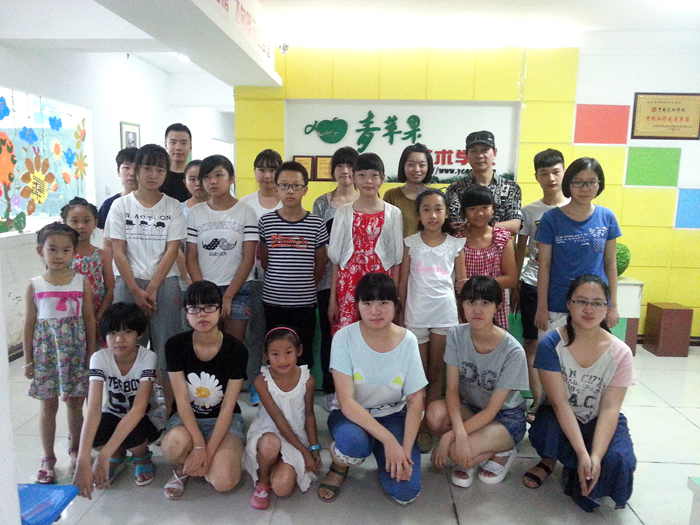 2015年暑期,毕业于中央美术学院现在美国攻读硕士研究生的黎婧同学回青苹果艺术学校探望恩师,并在课堂辅导小画家班的师弟师妹们,并鼓励他们学习只要坚持有恒心,就一定会实现自己的梦想!课后还热情邀请师弟师妹们一起合影留念。