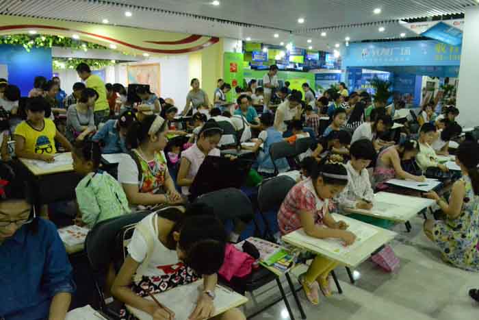 6月1日,青苹果艺术培训学校组织五十多名小画家应邀来到CBC大洋百货参加由宜昌市玖加壹文化发展有限公司主办的《我爱我家》“大城•房展汇”杯年度少儿绘画大赛,知名画家、青苹果艺术学校校长徐爱国亲自带队并担任此次大赛评委,对参赛小朋友进行现场指导。