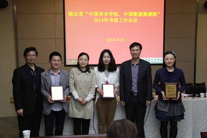 近日,“中国美术学院、中国歌剧舞剧院”2013年度考级工作颁奖总结大会暨2014年湖北省考级工作会议在武汉大学隆重召开,宜昌市青苹果艺术学校荣获考级先进工作单位,校长徐爱国荣获先进工作者,会议对艺术考级先进工作单位和优秀工作者进行了表彰。湖北省文化厅艺术与科教处,武汉大学国家文化创新研究中心,中国美术学院、中国歌剧舞剧院湖北省考级办公室等领导分别为考级先进单位和先进个人进行了颁奖。